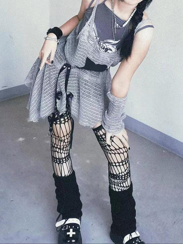Arm Gloves Hollow Out Star Crochet Knit Mini Dress