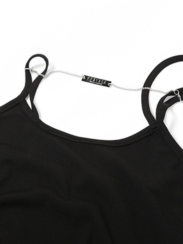 Description: This long dress cuts to a bodycon silhouette. it has detachable chain design. features irregular shoulder straps style. with high leg slit detailing. and has an asymmetrical hemline.