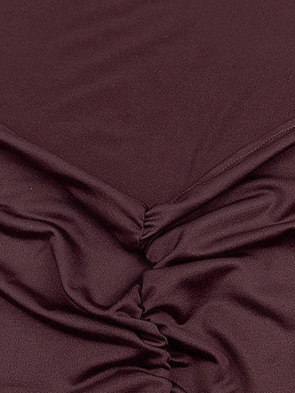 Description: This party dress shaped to a bodycon fit. features an extra open back design and ruched detail at butt.