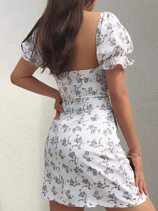 Description: Needed some floral dresses to your holiday wardrobe. This such cute dress has an adjustable tie neck style. features stretchy ruffle cuffs design. and with an extra open back detailing. you're obsessed.