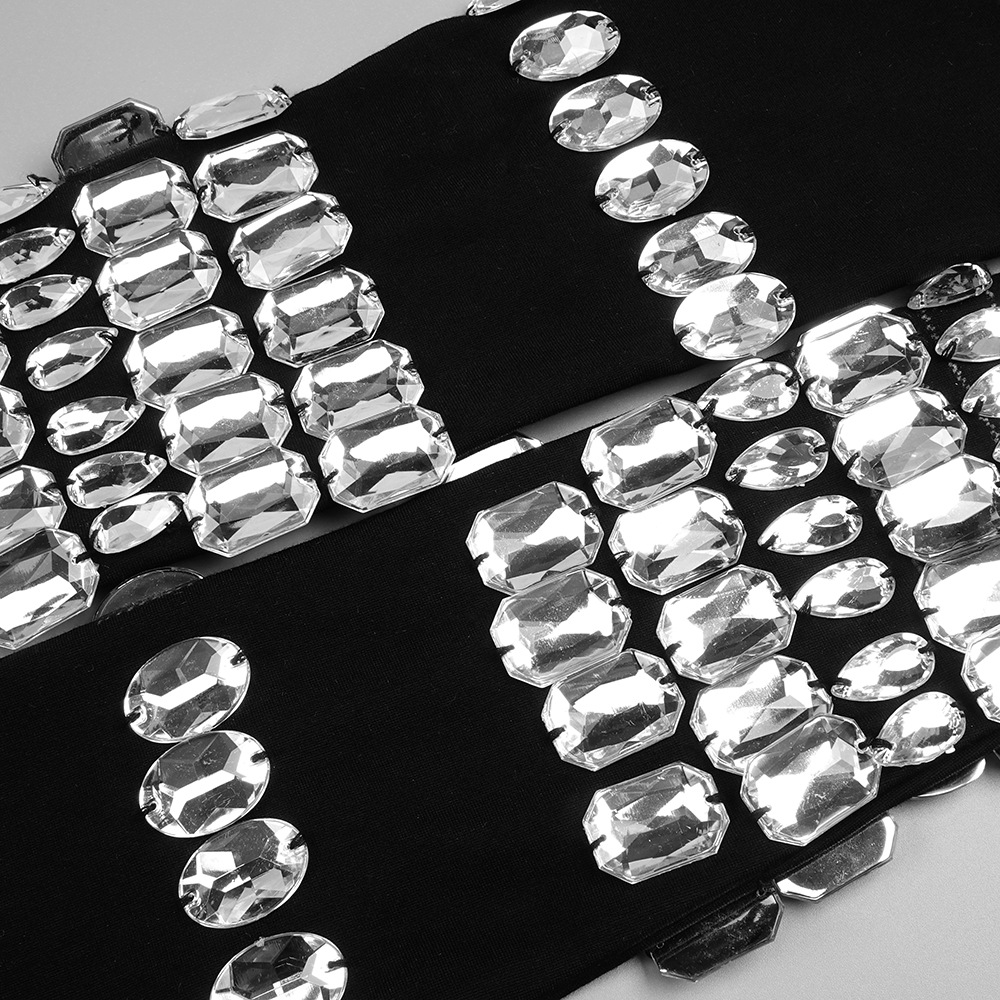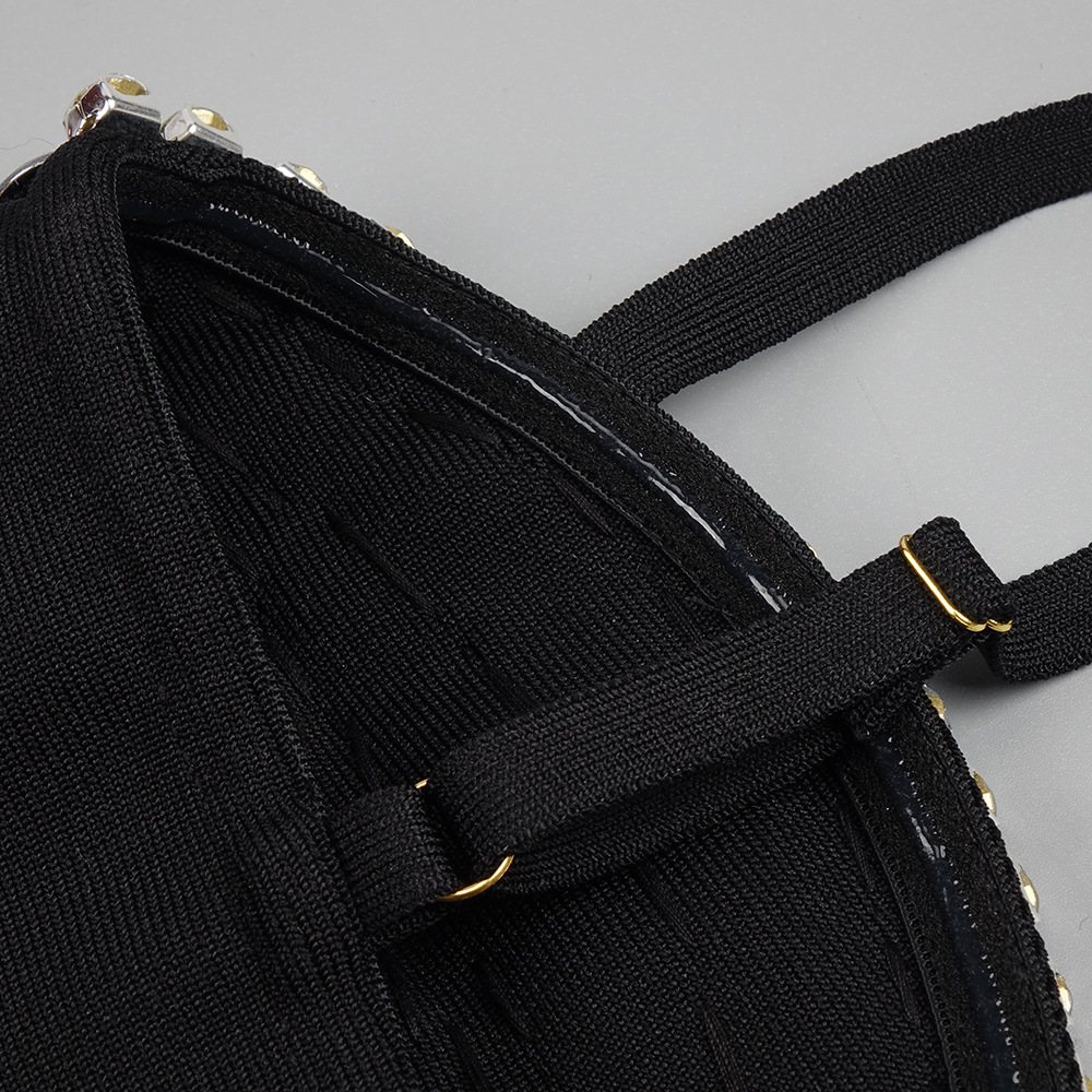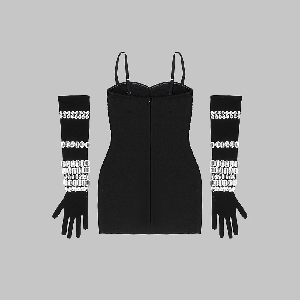 Elevate your party and club attire with our "Black Rhinestone Embellished Cami Dress." Tailored for a slim fit. this dress hugs your curves in all the right places. crafted from high-quality spandex that offers both comfort and a flattering outline. Its seasonless design ensures this piece can be your go-to choice for any event. year-round.