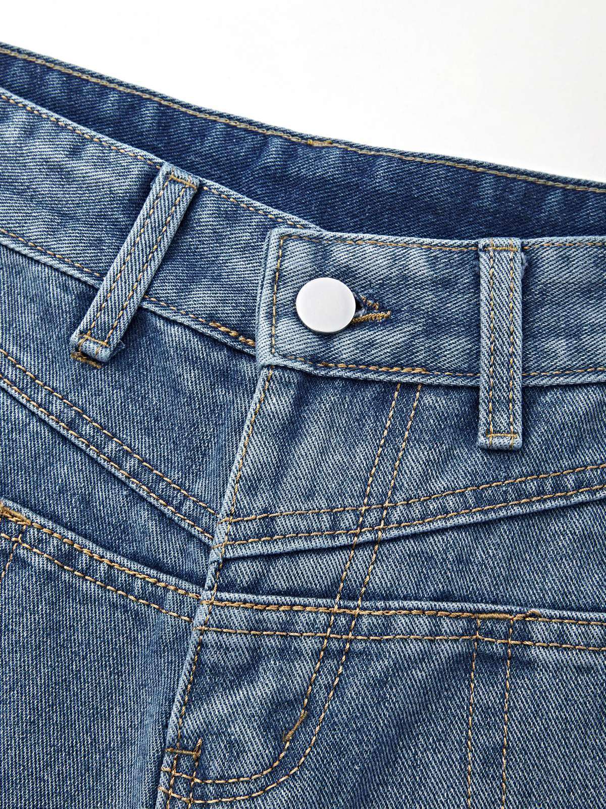 Description: Keep some versatile and retro denim jeans to your wardrobe essential. Our patchwork jeans have paneled seam detail under the waist. features pockets at front & back. multi belt loops and a metal button zip fasten design.