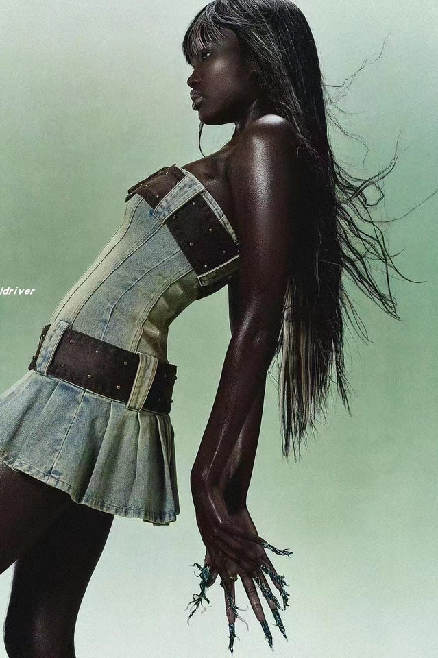 Chelsea Denim Kilt Mini Dress