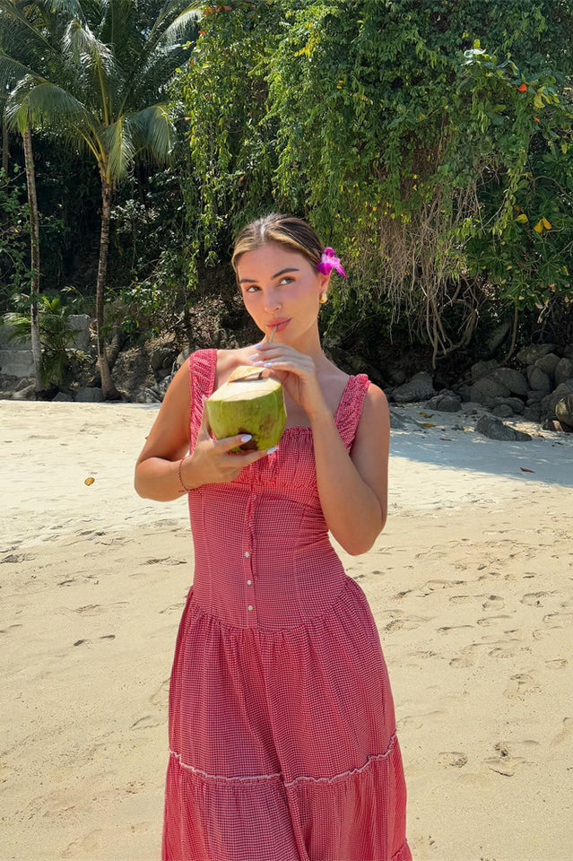 This prairie maxi dress is designed with smocking details on the back. ruffle accents. and fixed buttons down the front. Slip into the Christabella dress and your favorite pair of pumps and you'll be ready for frolicking every weekend this season.