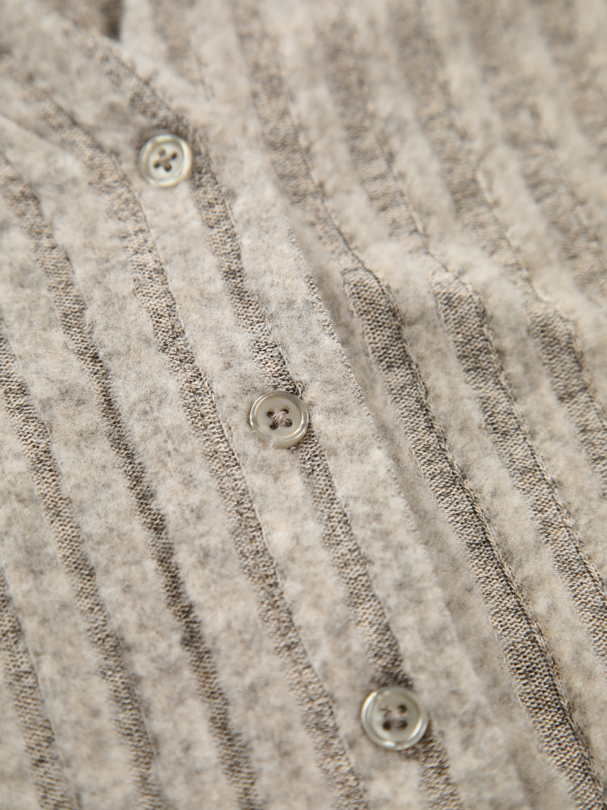 Collared Long Sleeve Slit Ribbed Knit Shirt