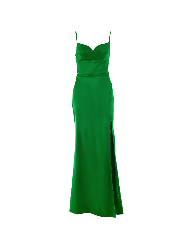 Cowl Neck Split Satin Maxi Dress