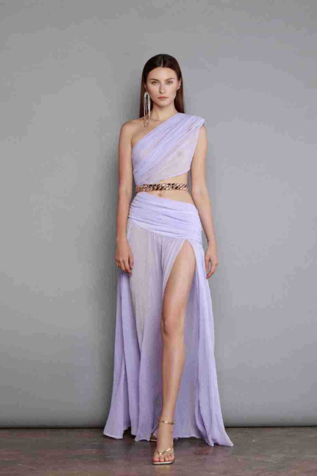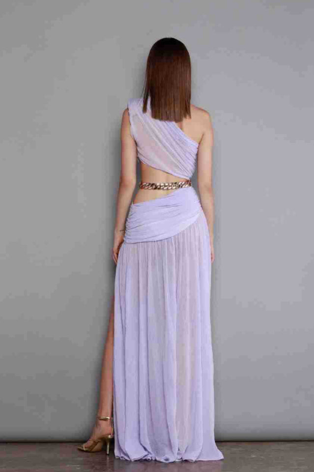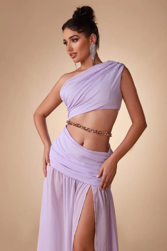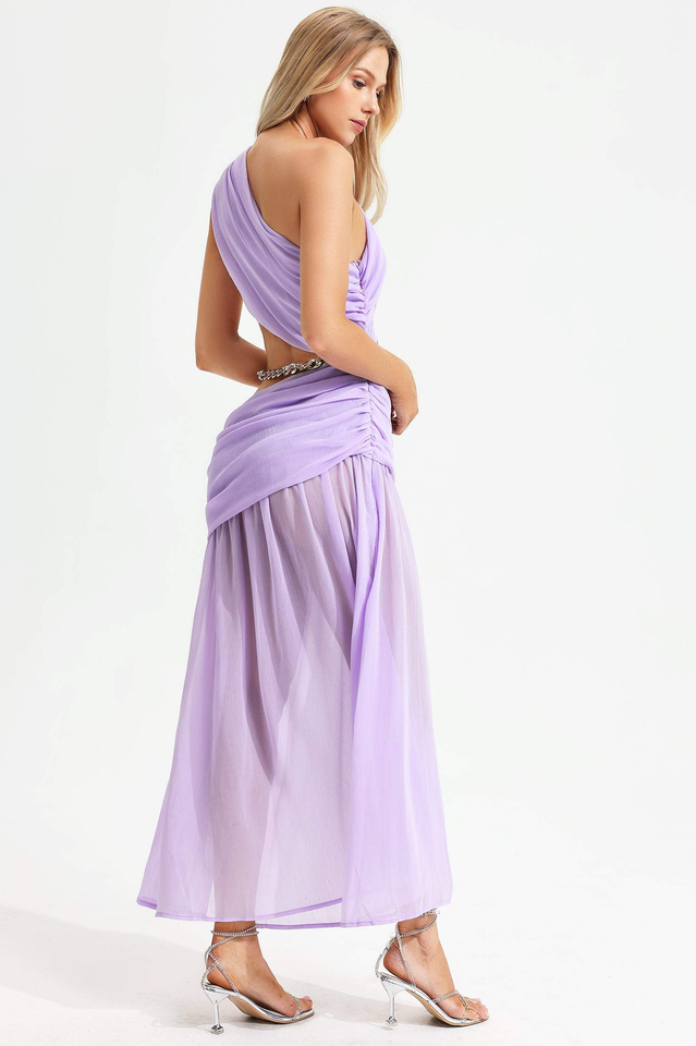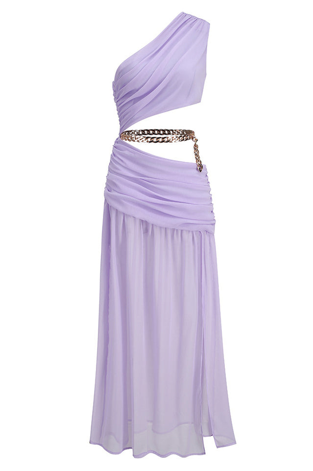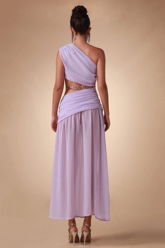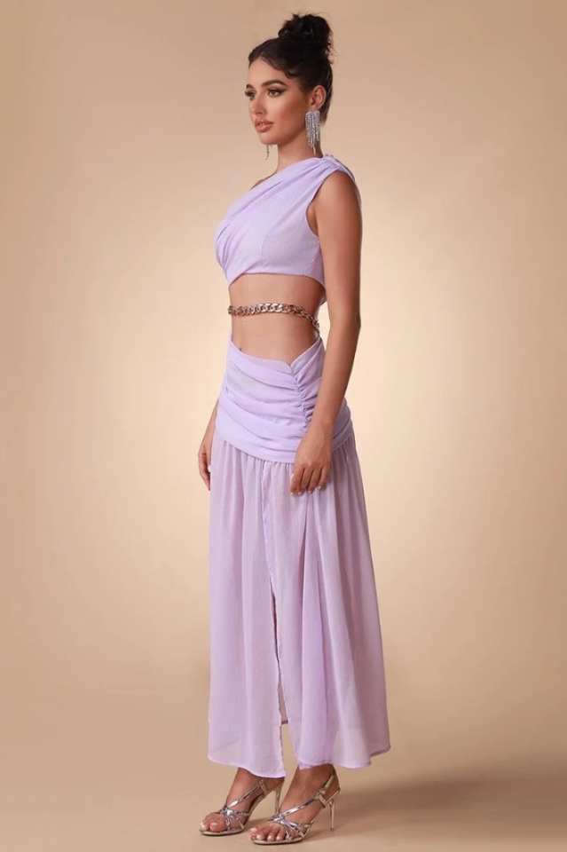 The Cressida Split Chain Maxi Dress offers effortless elegance in Purple. Featuring an elegant V-neckline and split chain detailing. this dress will make you look stylish and sophisticated. Soft fabric offers an excellent fit and comfortable touch. making it the perfect addition to your wardrobe.