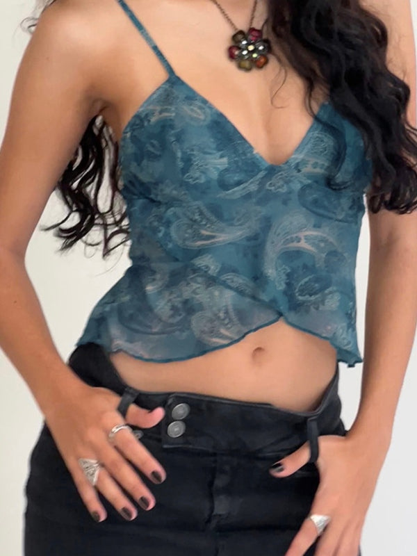 Cross Over Mesh Crop Cami Top