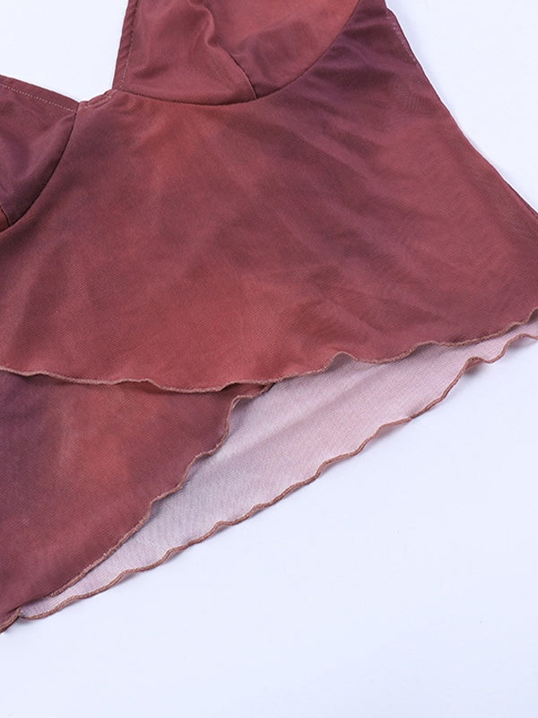 Description: Mesh materials are fresh and perfect for summer season. This sexy little cami top is made from stretch soft mesh fabric. perfect for summer holidays or festive vibes. It has stitched seam detail to the chest. and features a cross over hemline design.