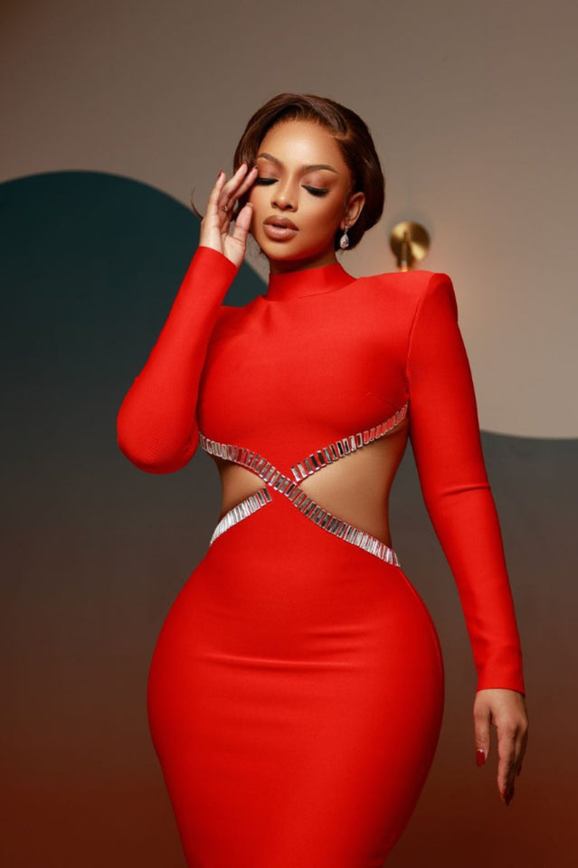 Crystal Trim Cut Out Crepe Maxi Dress