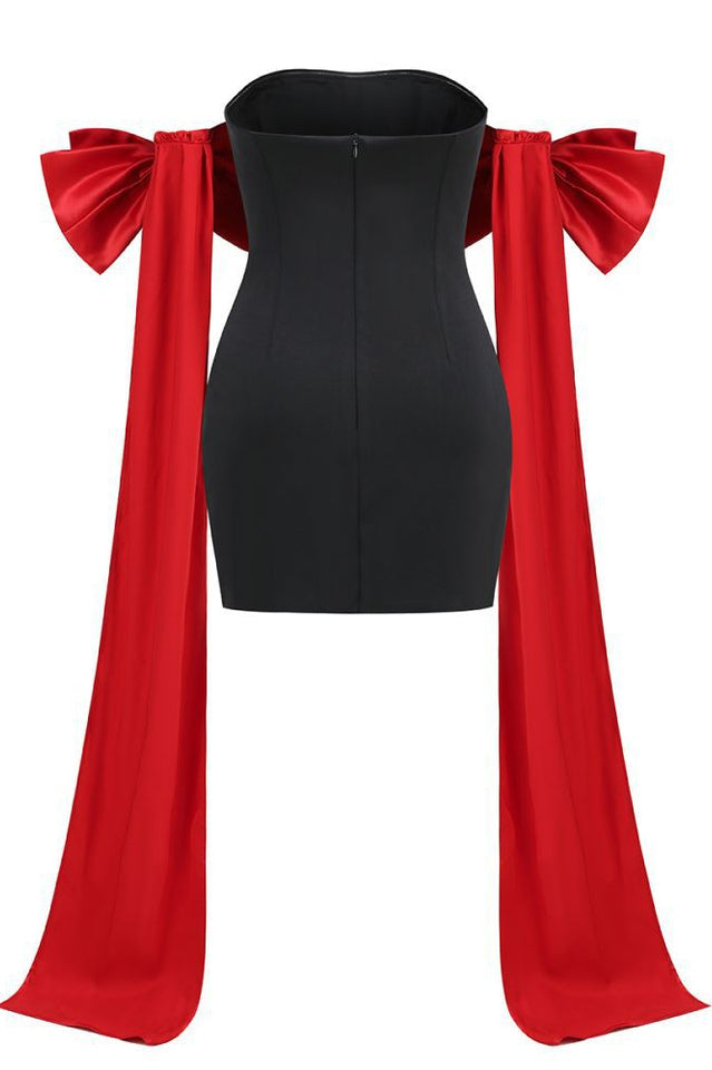 This style comes with a pair of detachable Train Bows in Red made from Duchess Satin.