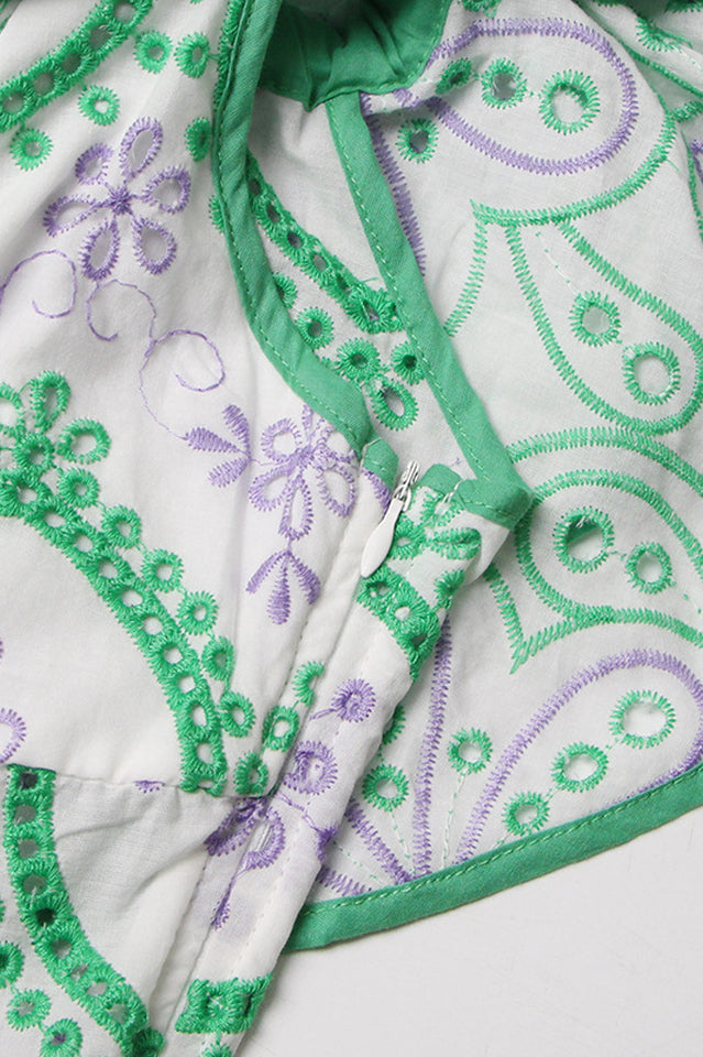Made of broderie anglaise cotton-blend. our Dalia skater dress showcases your feminine figure thanks to the beautiful Bardot neckline. flared skater skirt and fluttery ruffled sleeves. The slim fitted corset bodice is incredibly flattering. Style yours with neutral accessories and a loose updo to flaunt your sunkissed décolletage.