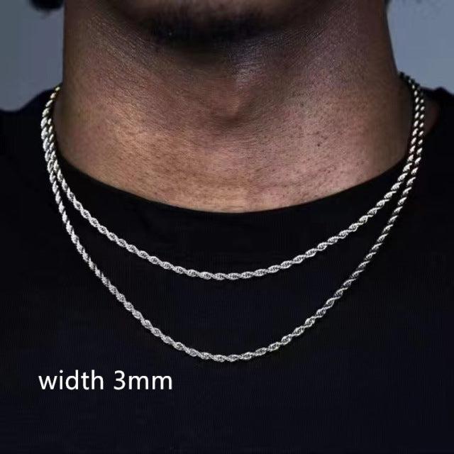 Indulge in sophistication with the Éclat Fusion Rope Cuban Chain Necklace. a masterpiece of style and craftsmanship that transcends trends. Crafted for the discerning gentleman. this necklace epitomizes elegance with its chic and stylish design. Made from premium titanium steel. it boasts unparalleled durability and reliability. ensuring it remains a timeless accessory in your collection. Whether you're strolling through the city streets or attending a lavish soirée. this necklace effortlessly elevates your ensemble. exuding confidence and refinement.