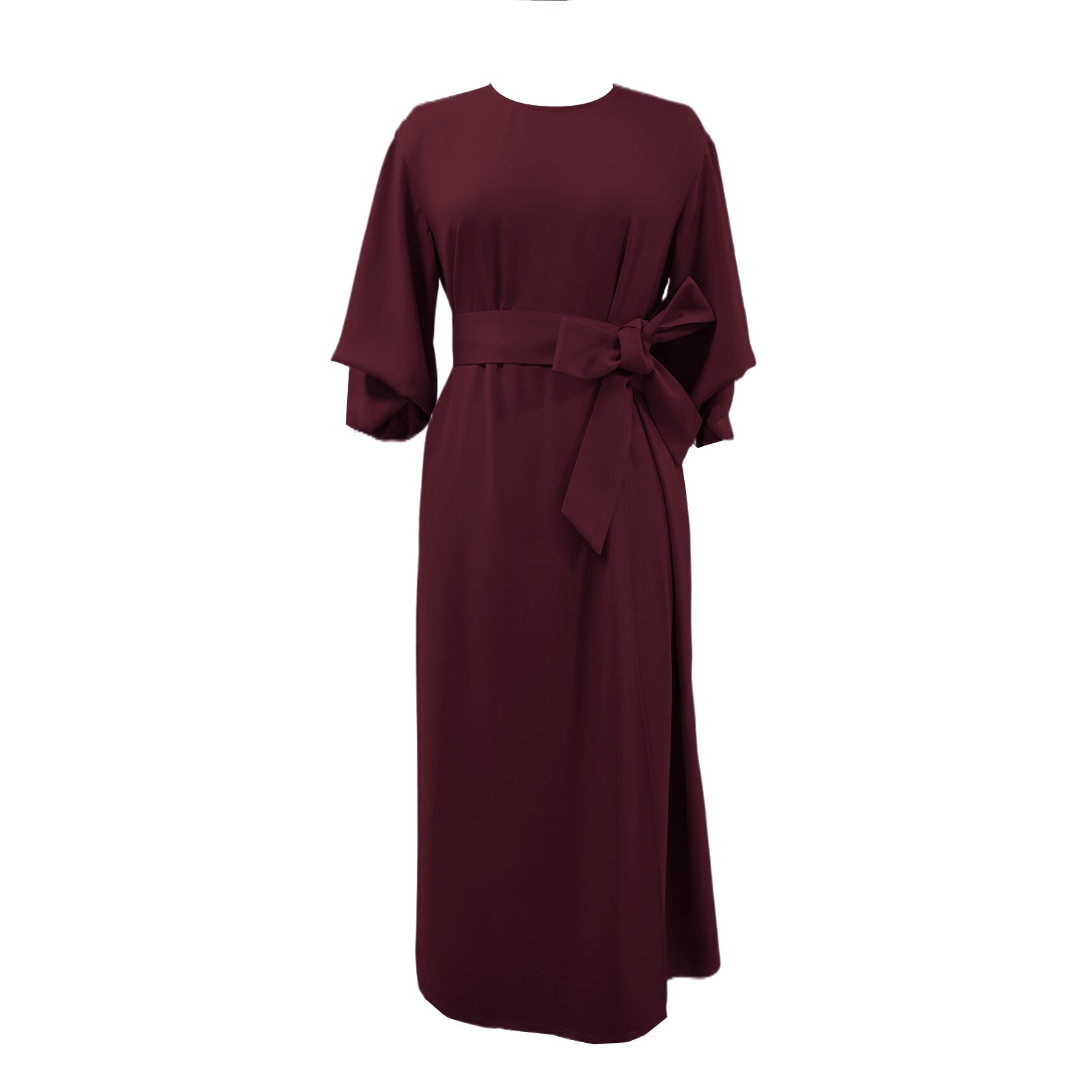 With voluminous. statement sleeves and a defined belted waist. this dress effortlessly flatters the figure while exuding a sense of high-fashion drama. The rich black shade brings a regal touch. making this piece perfect for both day-to-night transitions. whether you're attending a formal event or a chic city gathering. The added elasticity ensures a comfortable fit without compromising on elegance.