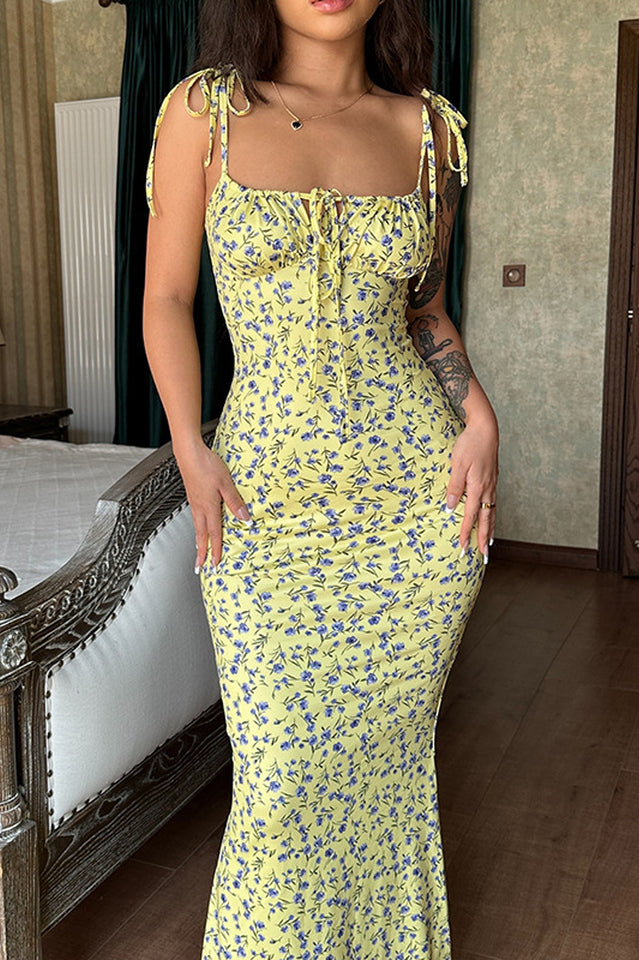 Floral Print Sleeveless Backless Maxi Dress