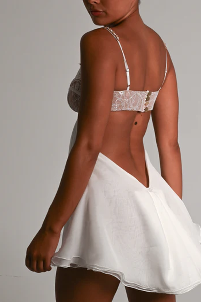 Cut Out Swing Style Chiffon Mini Dress with Lace Bralette and Chain Strap Detail