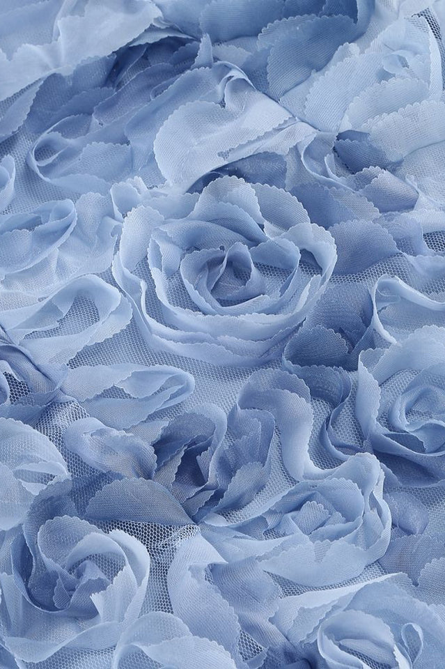A whimsical masterpiece that captures the essence of romance and charm. Crafted with meticulous attention to detail. this dress is adorned with intricate 3D floral embellishments that cascade delicately across the fabric.
