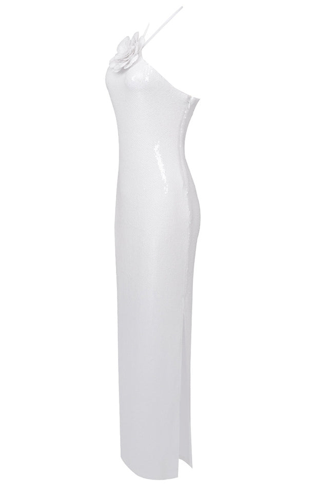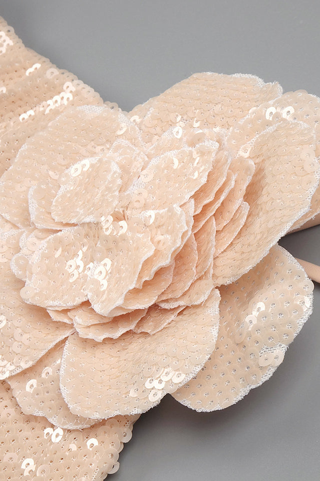Shimmer and shine in the champagne sequins and feel confident in the flattering halter neck and rosette details. Make a statement and stand out from the crowd!