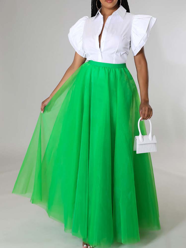 High Waist Solid Color Skirt