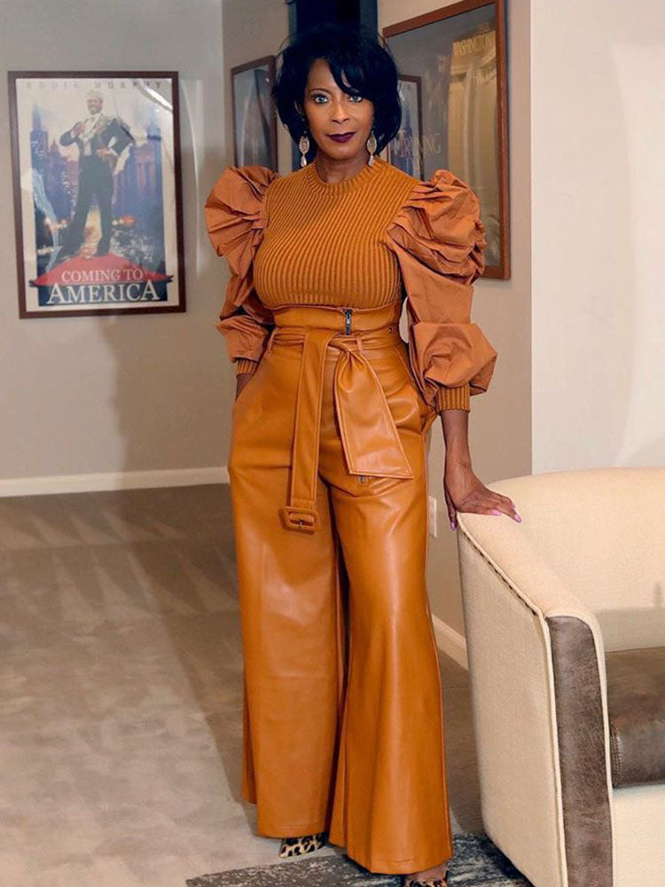 High Waist Wide Leg PU Pants