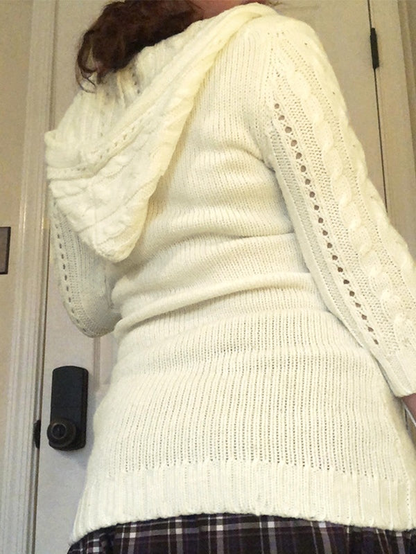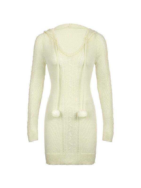 Hooded Cable Knit Long Sleeve Mini Dress