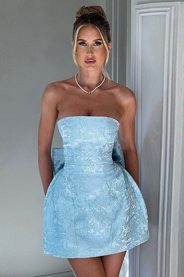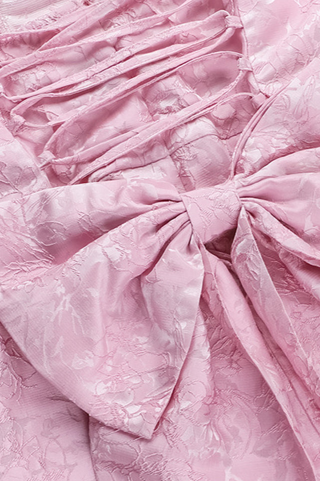 This dress is your go-to for creating a statement at any event. With its structured bodice and elegant. floral jacquard fabric. it offers a timeless silhouette that enhances your figure. The standout feature is the oversized bow at the back. which can be worn on or off. allowing you to switch up your look effortlessly. Whether you choose to keep the bow on for an extra touch of drama or remove it for a more streamlined appearance. this dress adapts to your style needs. Perfect for late summer gatherings or any special occasion where you want to leave a lasting impression.