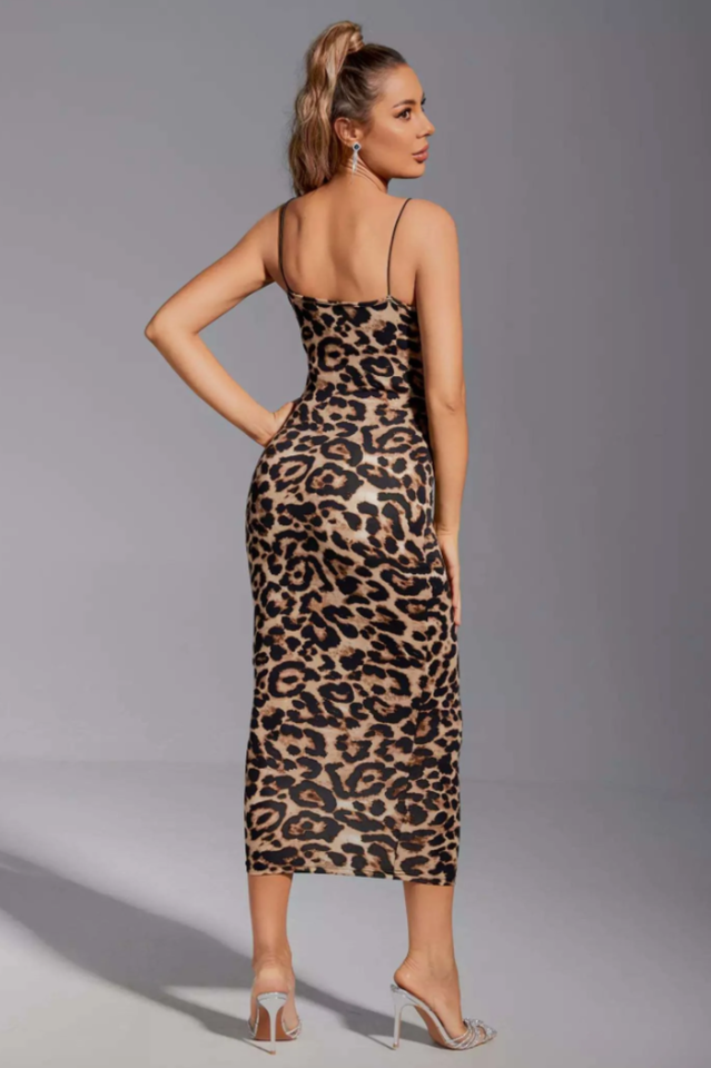 Full of wild glamour. it's our Kailani Leopard Bodycon Dress. The design of the sleeveless long dress.