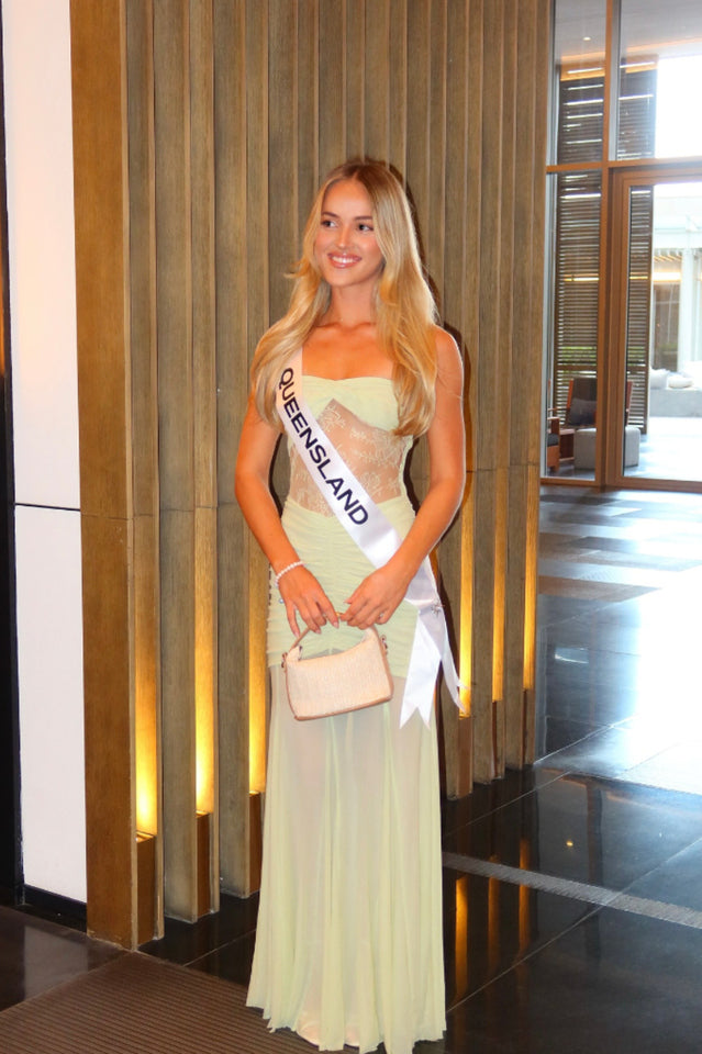 The KHADIJAH Lace and Mesh Maxi Dress is a romantic showstopper designed to captivate. Featuring a strapless neckline with a twisted. gathered bust detail. this silhouette highlights the figure with a delicate lace panel bodice and a softly gathered waist. The voluminous mesh skirt adds graceful movement. creating a beautiful contrast to the fitted upper half. Partially lined for coverage with a hint of sheerness. this dress is the perfect choice for special occasions. formal evenings. or moments that call for effortless enchantment.