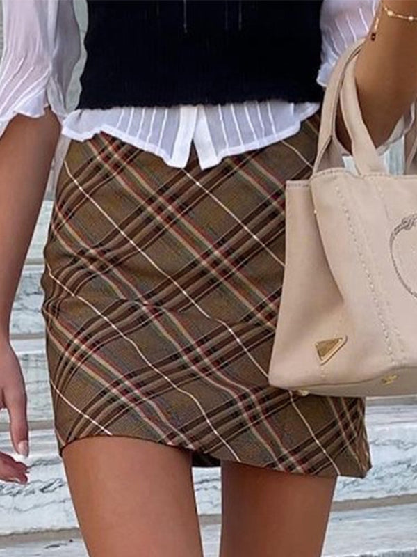 Design: This prep schoolgirl skirt features checkered inspired print. with a fitted silhouette. and a concealed zip fasten along one side.