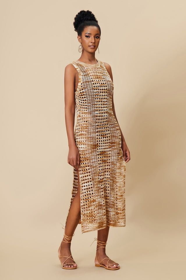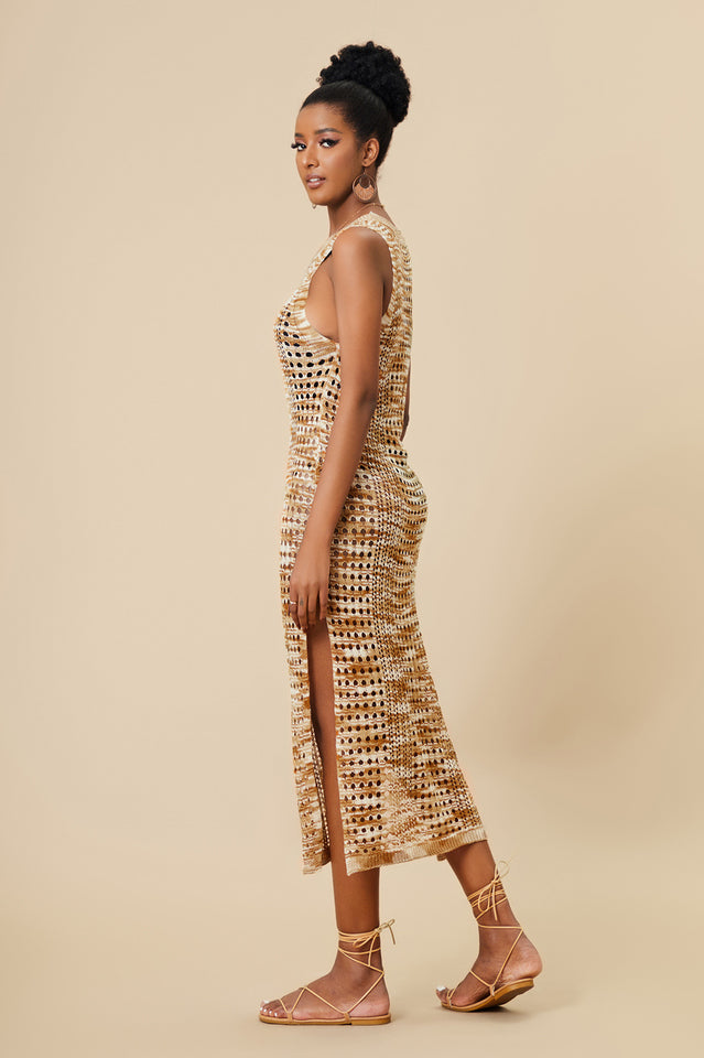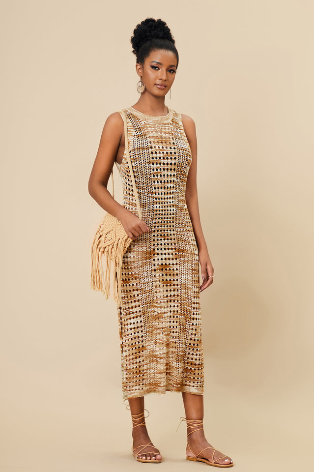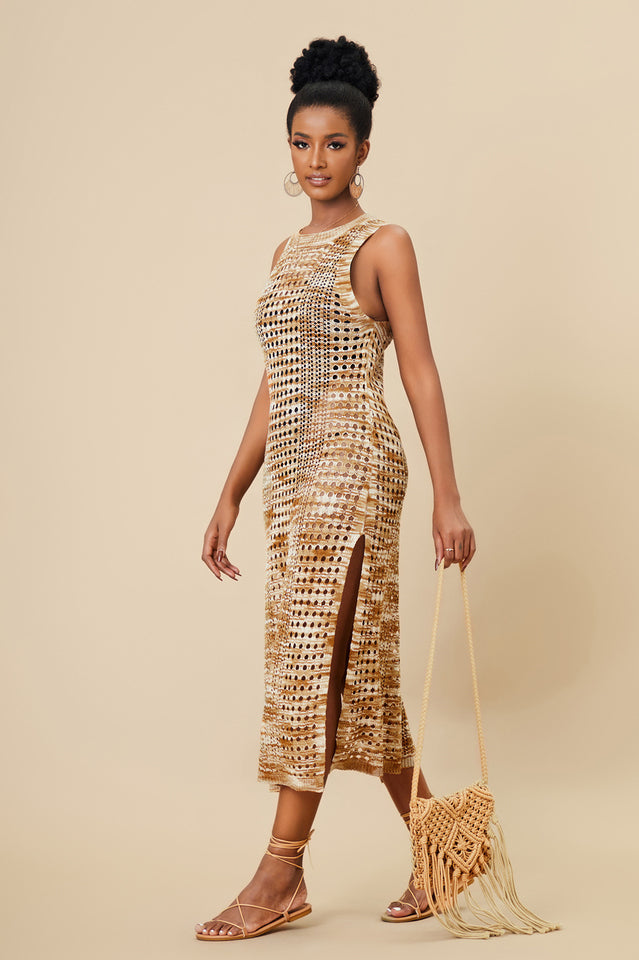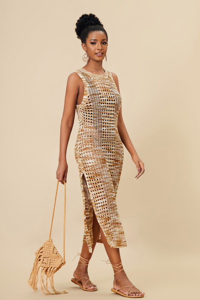 This effortless knitted cutout beach cover-up dress provides glamorous protection from the sun's rays. while allowing you to stay cool and comfortable in between taking a refreshing dip in the pool or sea. Crafted from lightweight knitted fabric. the stylish design with its delicate cutouts will keep you looking chic. even when you're in a rush to get from the beach to the bar.