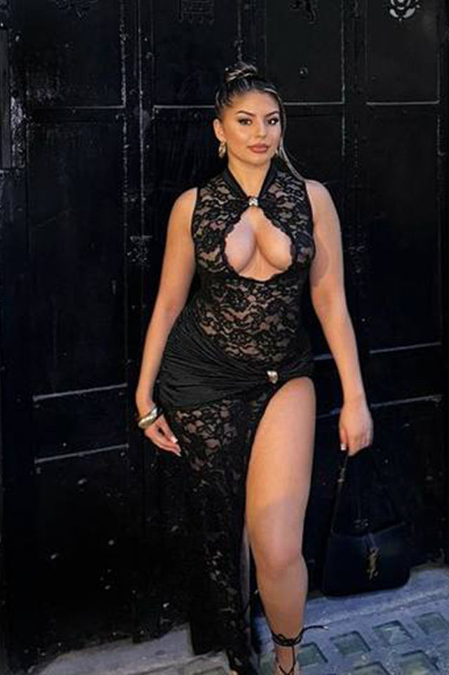 Crafted from a romantic floral lace fabrication with cut out features at the front. completed with gold metal embellishments. Our Lace Keyhole Maxi Dress in Black hugs your figure all the way down to the maxi hemline and will have you feeling confident and cinched wherever you wear her!