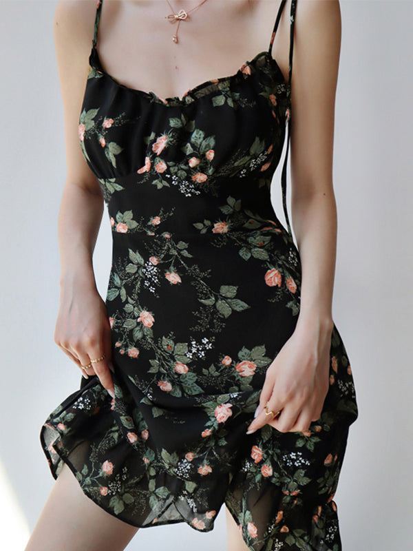 Description: Holidays are full of flowers. This vacay-vibe mini dress has floral print allover. it has fully lined. features adjustable tie-up shoulder straps style. along the collar with frill trims. with ruffle hemline. a smocked back design. and has concealed zip fasten to the back.
