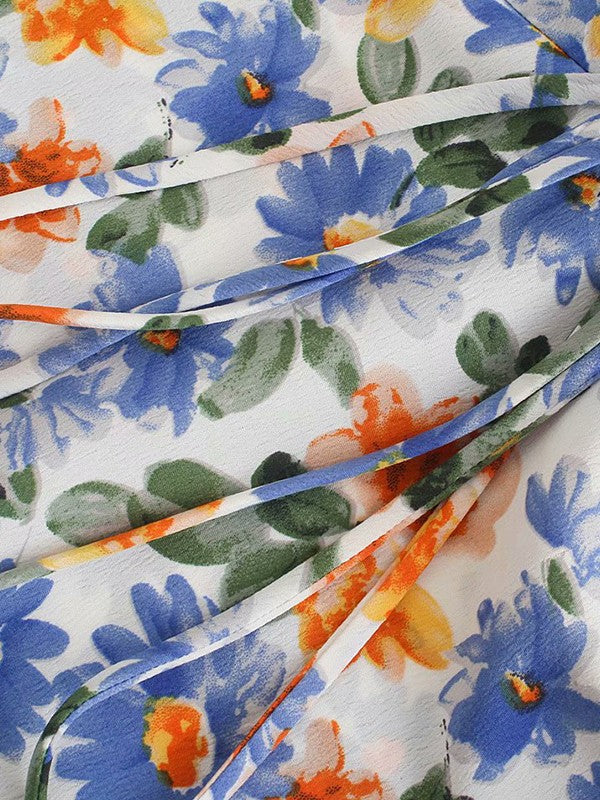 Description: Stay cute with this summer floral dress. we're obsessed. This long dress has printed with allover floral patterns. features adjustable shoulder straps. tie front fastening. and fastened a concealed zip fly to the back.