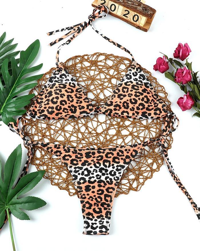Leopard Print Lace Up Triangle Neon Bikini