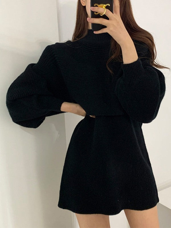 Long Sleeve Crop Top & Sweater Dress Set