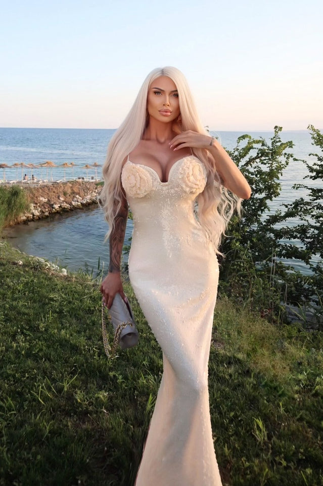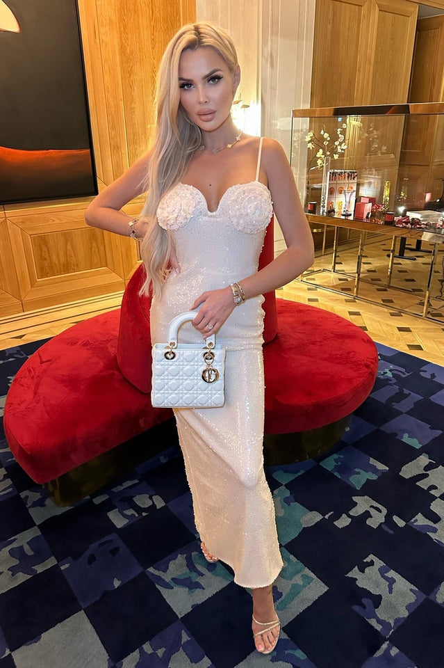 As seen on Hailey Bieber! You've got your exclusive invite. so now it's time to make an unforgettable entrance in the Lorelei Brown Sequin Dress! Shiny brown sequins atop a luxe poly lining shape this dazzling gown with round retro bustier cups that are accentuated with a large 3D flower. A darted bodice falls to a maxi skirt with a flaring mermaid hem. Kick pleat and hidden zipper/clasp at back.