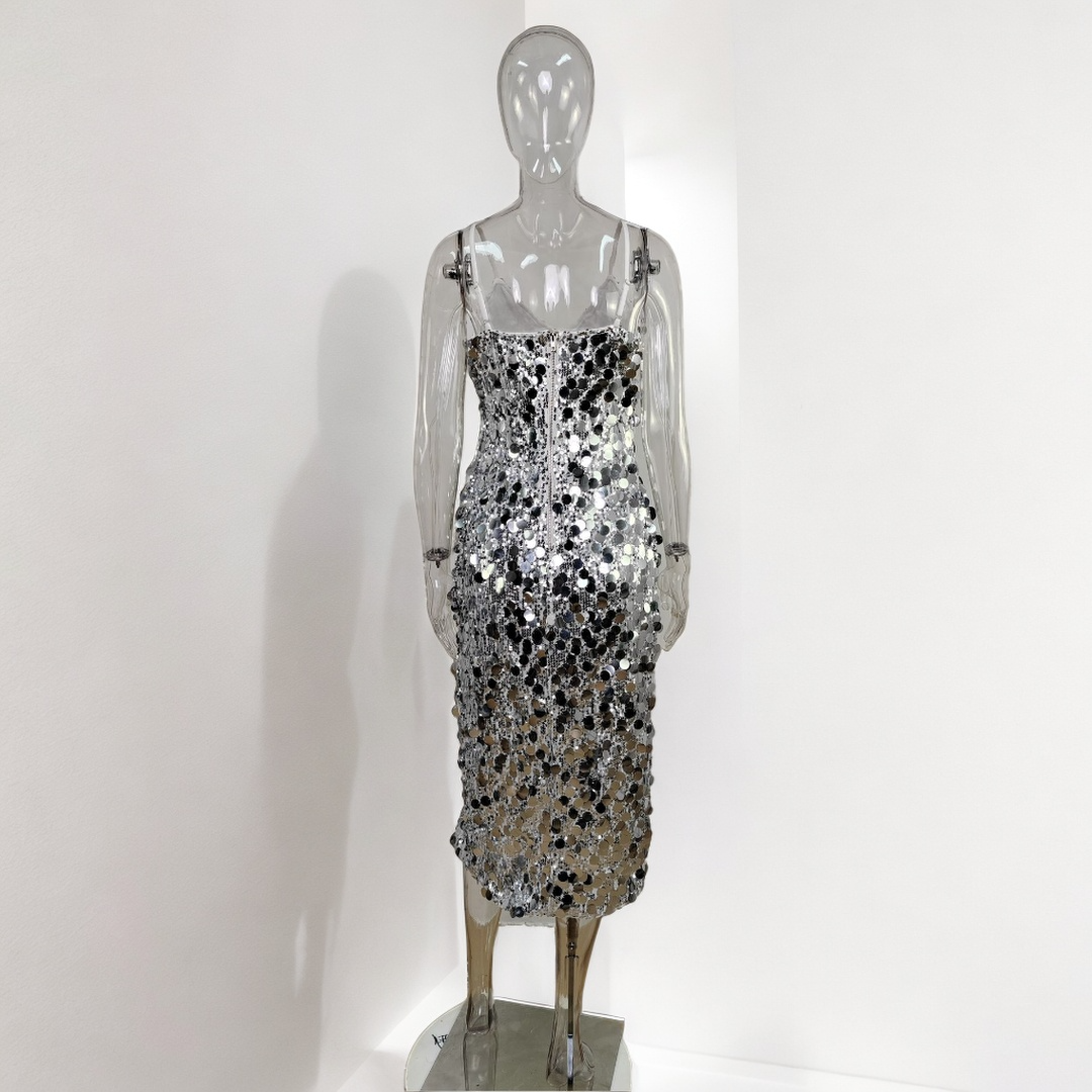 Elevate your style and illuminate the night with our captivating Sexy V-Neck Sequin Midi Dress. designed to make you the center of attention at summer parties and club nights. This slim-fit sensation. meticulously crafted from lightweight polyester. ensures you shine bright with every step you take.