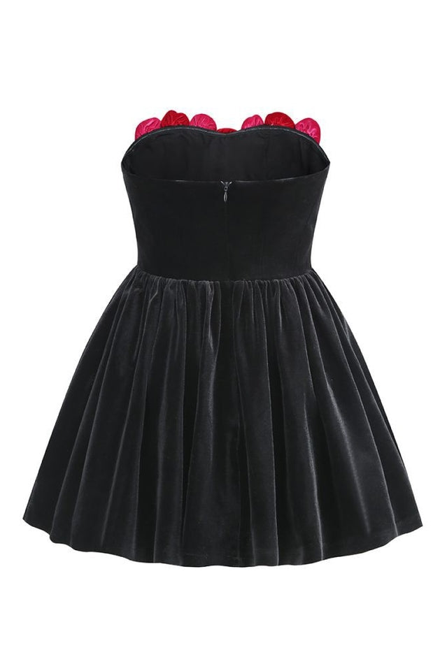 Adorned with intricate floral patterns in luxurious velvet. this dress exudes grace and allure. creating a captivating ensemble. Crafted with sumptuous materials. the dress enhances your charisma. adding an irresistible allure and sophistication to your overall look.