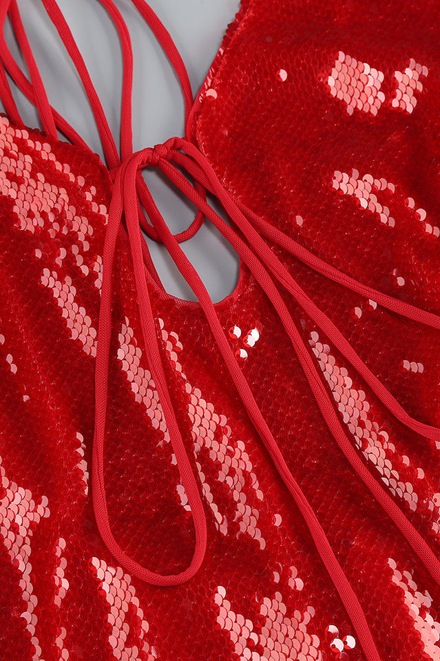 The Mariah Dress is a stunning choice for any holiday event. This elegant midi dress features a vibrant red color and sparkling sequin detailing. making it perfect for the festive season. Stand out and make a statement with this dazzling dress.