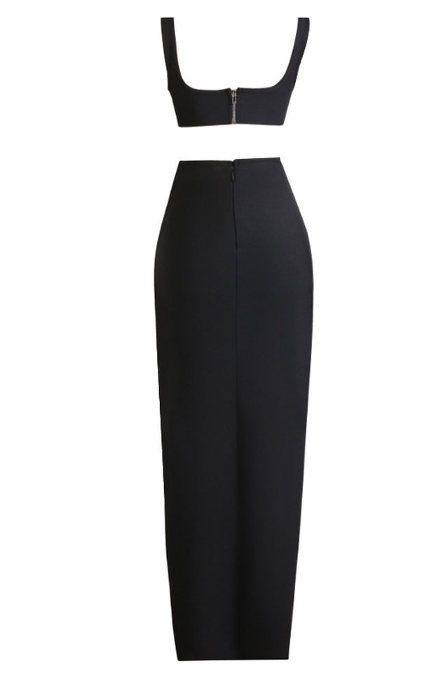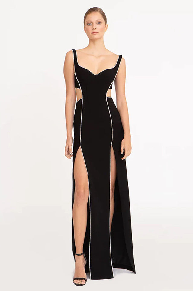 Look stunning in the elegant and sophisticated Martha Black High Slits Dress. Crafted from high-quality. black fabric. the dress features high slits at the both sides and a flattering cut out from front to back - perfect for those occasions that demand a refined yet alluring outfit. Show off your sense of style and embody timeless beauty in this unique and pretty dress.