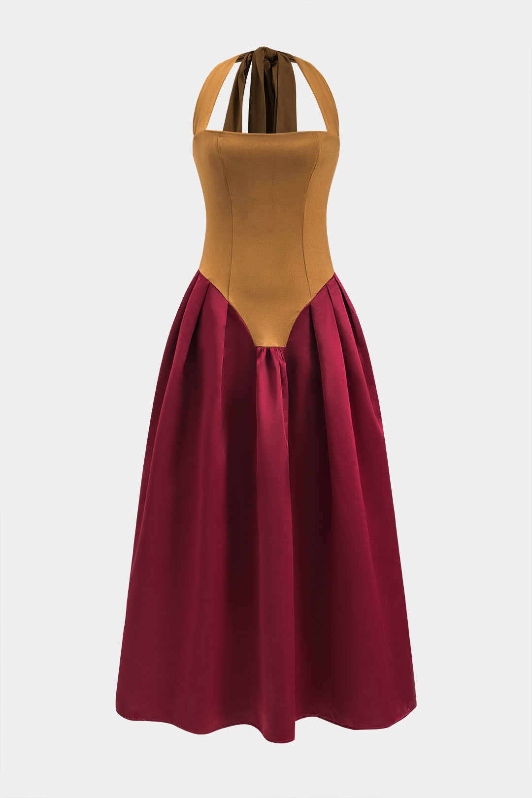 Contrast Satin Pleated Tie-Up Maxi Dress