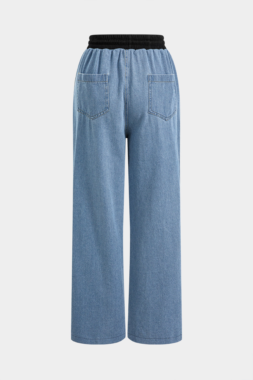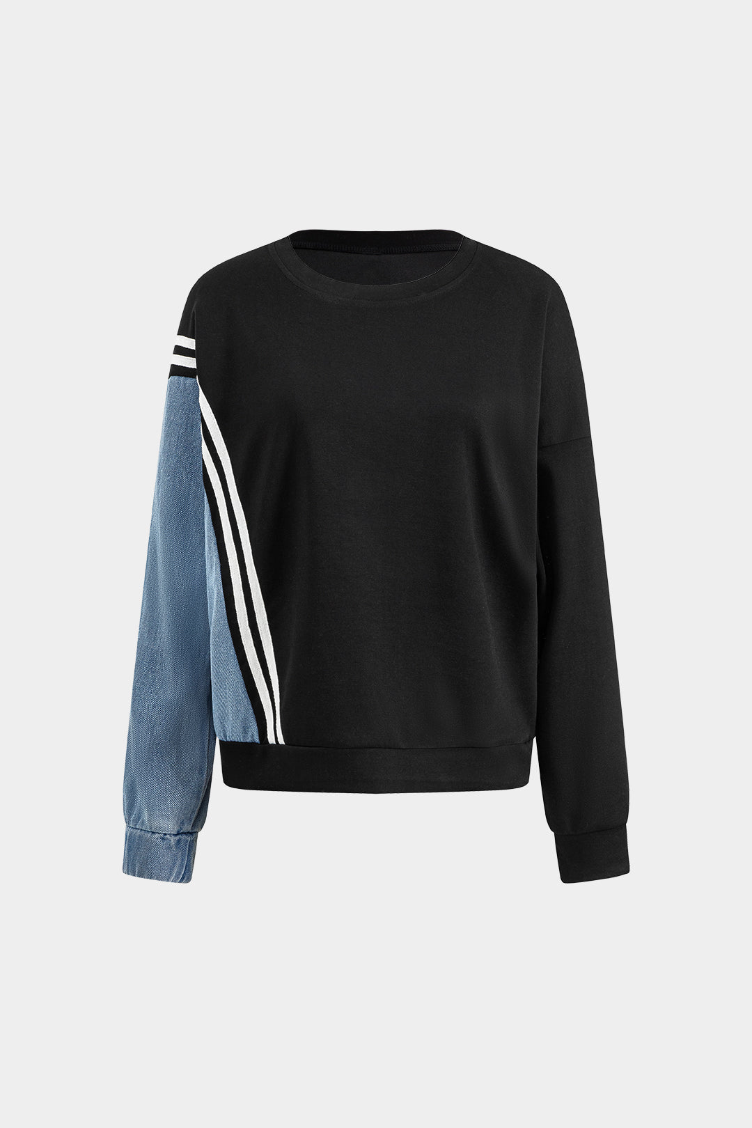 Denim Patchwork Round Neck Long-Sleeve Top And Drawstrings Pocket Trousers Set