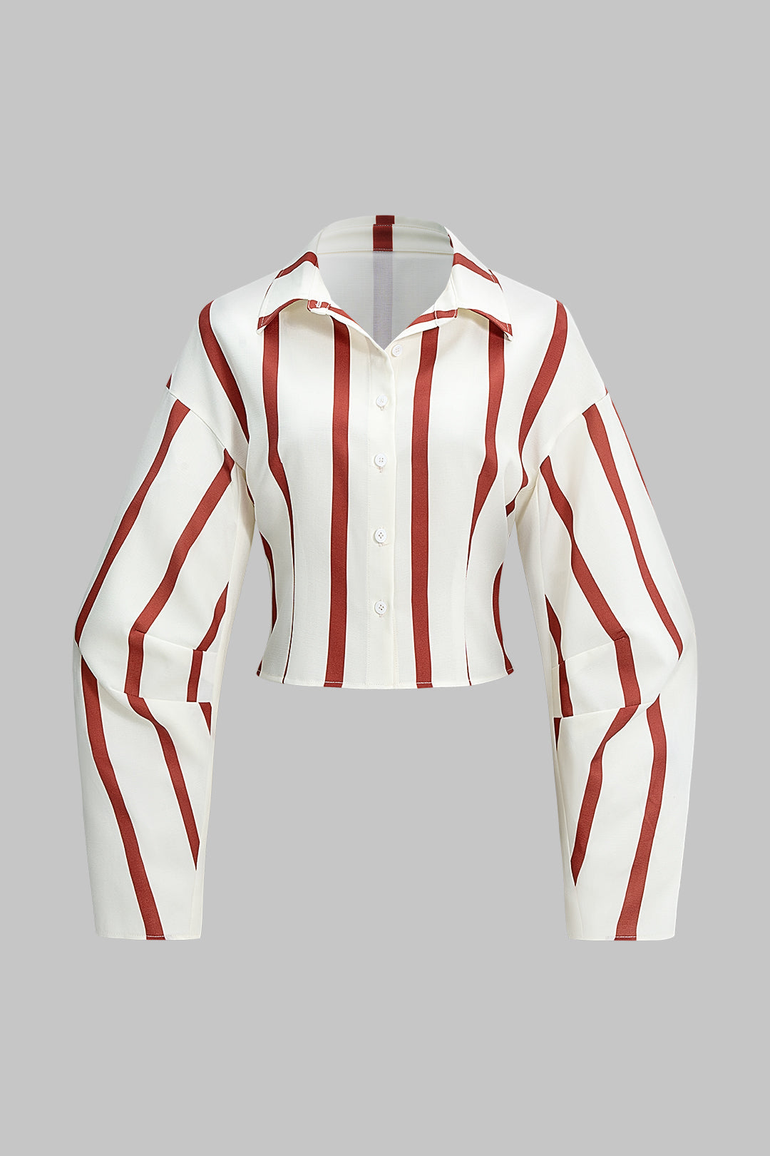 Contrast Stripes Print Button Long-Sleeve Shirt