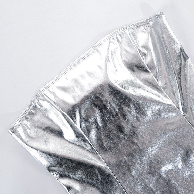 Leave them dreaming of you for a little longer on this sexy tube dress! Made of a textured leather. embellished with a sultry thigh slit. featuring a sleeveless bodice structured with a bandeau neckline. a sleek silhouette accentuated with stitching details. ending up with a short length. Find more trendy women's strapless dresses or unique clothing in our boutique. and opt it with a sparkling party bag and a pair of high-heel pumps for a futuristic look.
