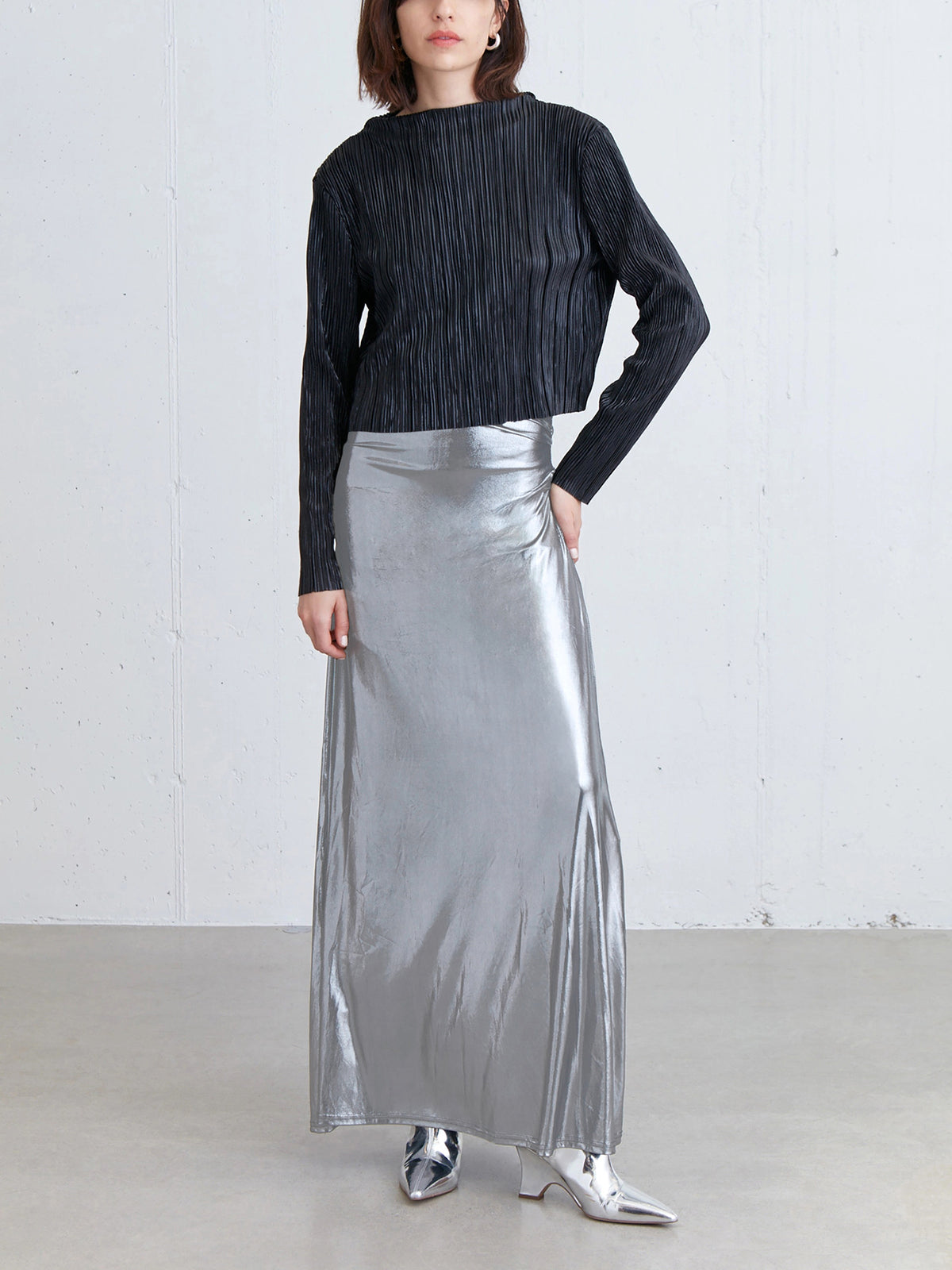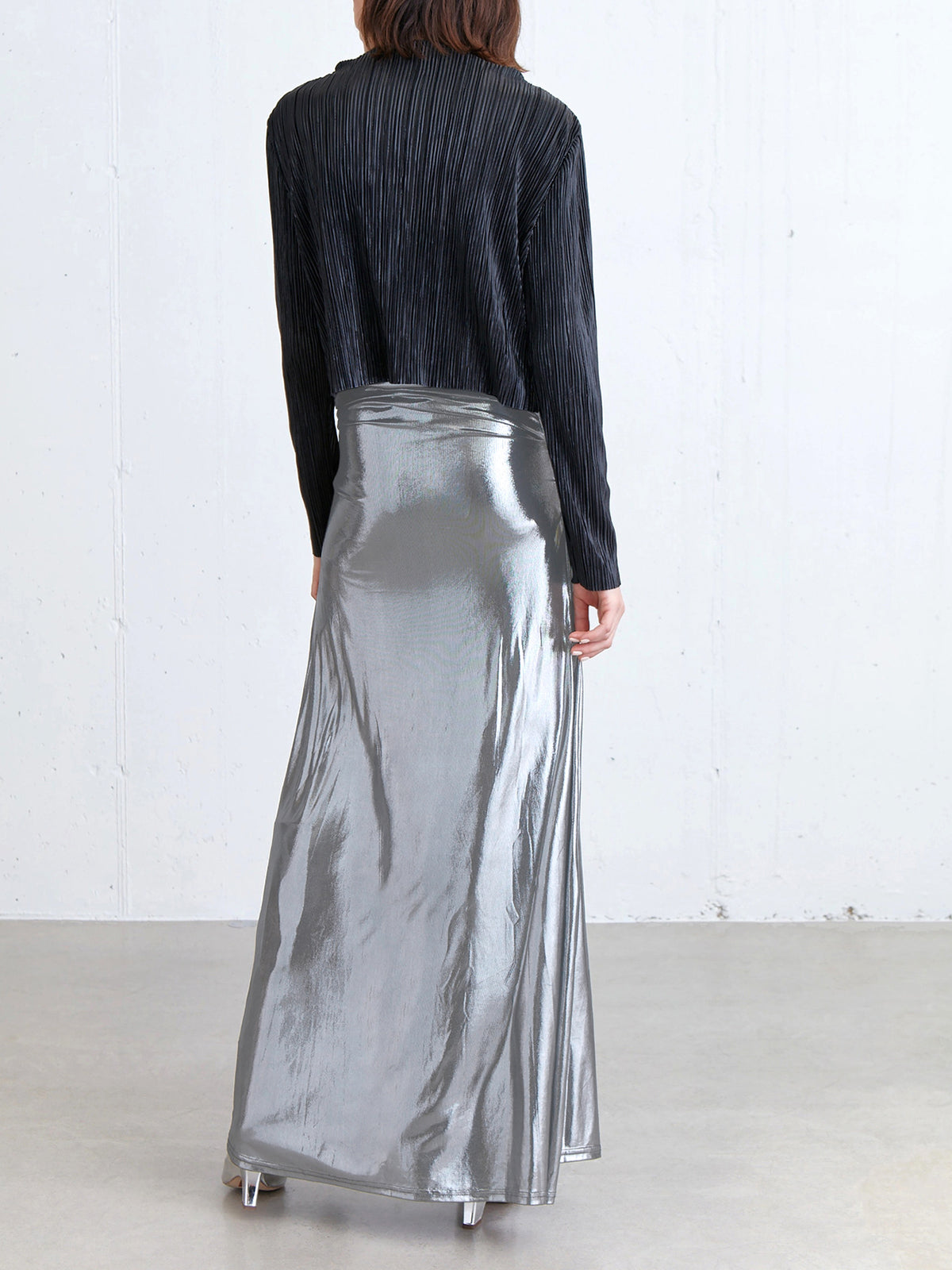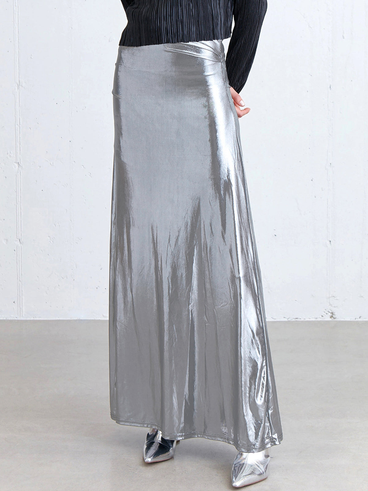 Metallic Silver Maxi Skirt