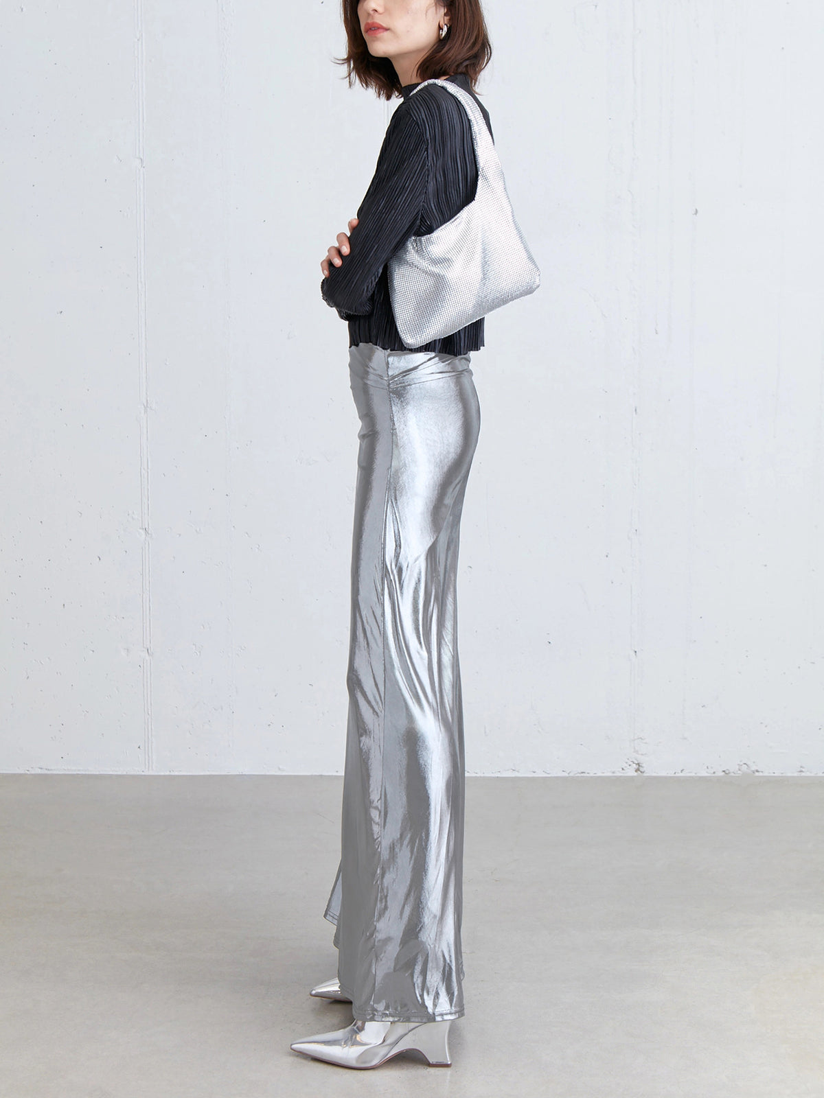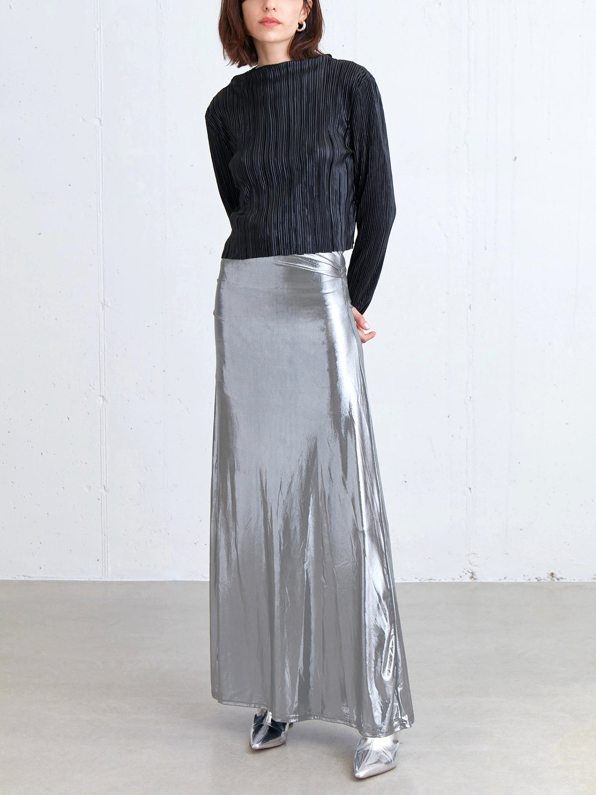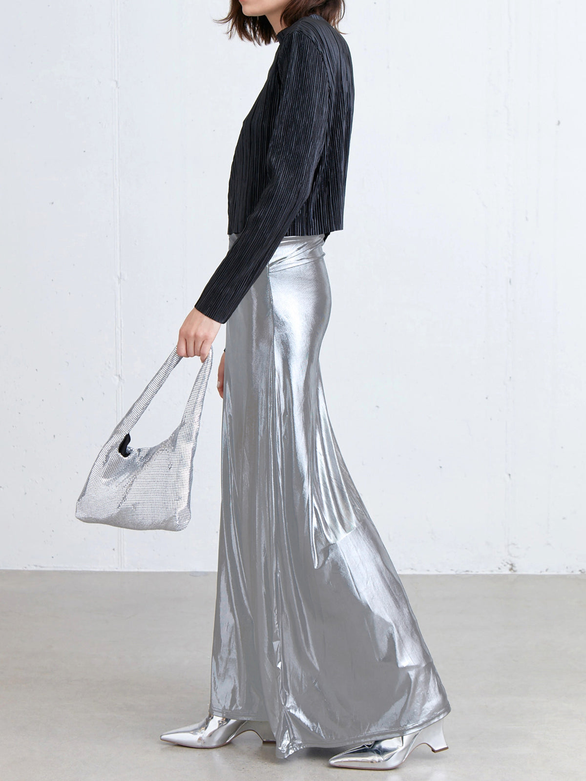 Metallic Silver Maxi Skirt