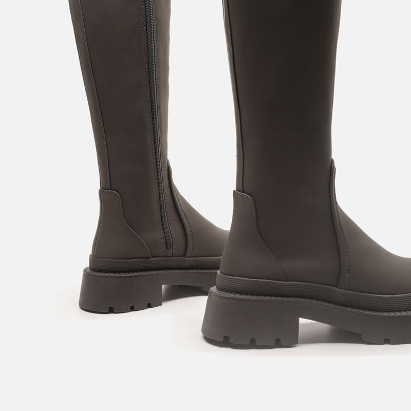 Toe Panel Trim Chunky Platform Knee High Boots - Army Green