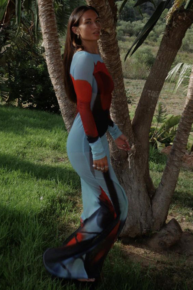 The Natalie Dress is a versatile addition to any wardrobe. With its long sleeves and semi-sheer fabric. it can be worn as a stylish swimsuit cover-up or paired with a slip for an elegant evening look. The enlarged floral print adds a touch of femininity to this must-have midi dress. Perfect for any occasion!