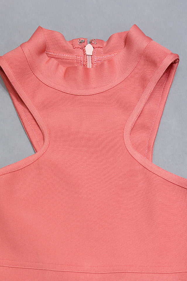Prepare to wow in this unreal dress. Featuring a pink material with a cut-in design and a halter neckline. it is perfect. Keep all eyes on you and team with contrasting heels and minimal accessories.