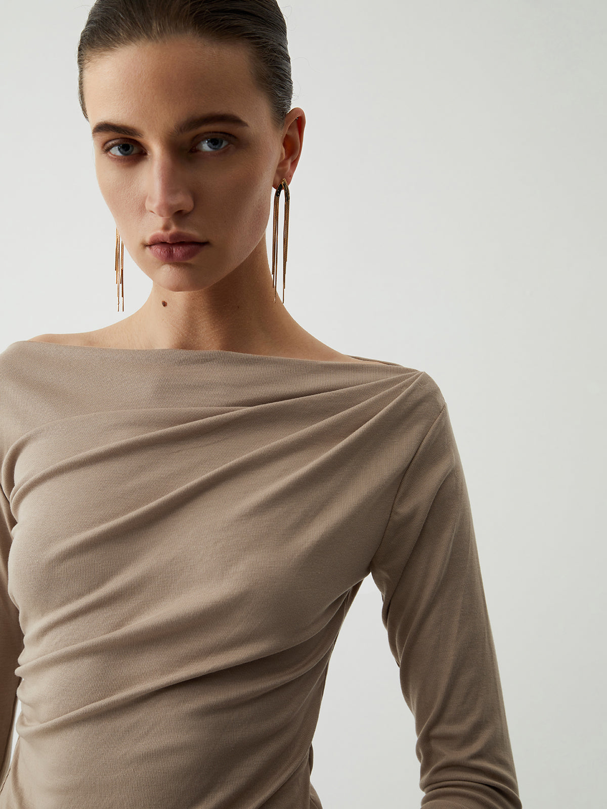 Oatmeal Ruched Long Sleeve Top
